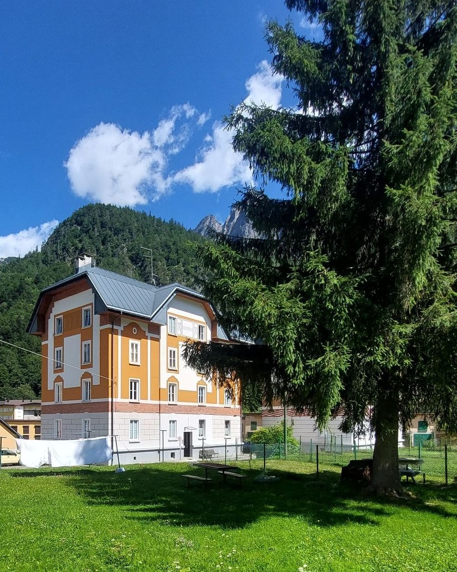 Novo rekonštruovaný rodinný apartmán sa nachádza v historickom baníckom dome, na konci dediny Cave del Predil, na prvom poschodí.