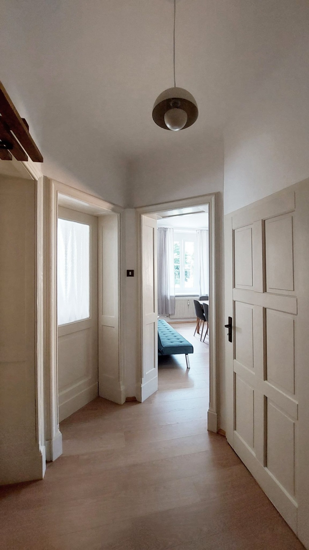 z ktorej vedú dvere do jednotlivých miestností, kúpeľne a komory.